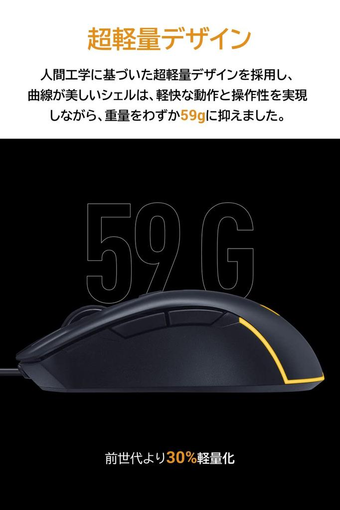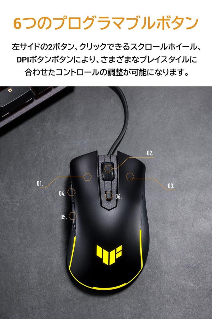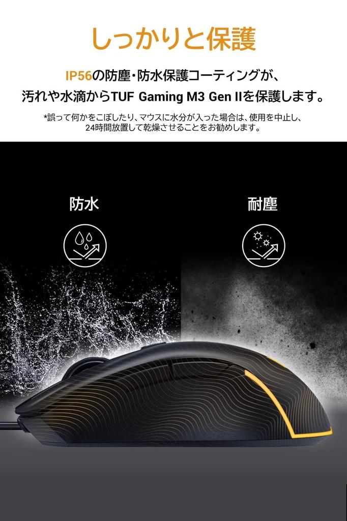 Игровая мышь ASUS TUF Gaming M3 Gen II P56 ASUS с антибактериальным покрытием 8000 точек на дюйм, проводная, 60 миллионов нажатий, подошва из ПТФЭ, 6 программируемых кнопок (59г /