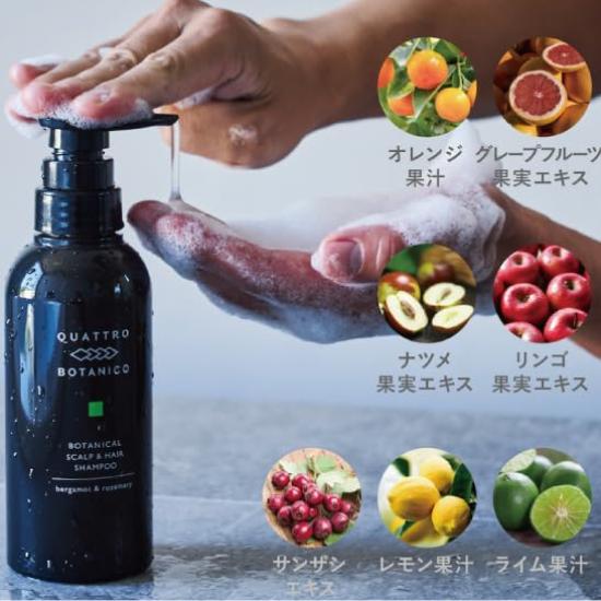[Решите широкий спектр проблем с волосами с помощью шампуня и набора для ухода] Этот продукт — шампунь Quattro Botanico (аромат бергамота) и лечение (мандарин и кедр) задавать. Шампунь тщательно удаляет грязь из пор кожи головы, которая является источником проблем с волосами, а уход придает им упругость и блеск, позволяя обеспечить антивозрастной уход* за волосами и кожей головы.. Эти два продукта активно решают широкий спектр проблем с волосами, с которыми сталкиваются мужчины среднего возраста.