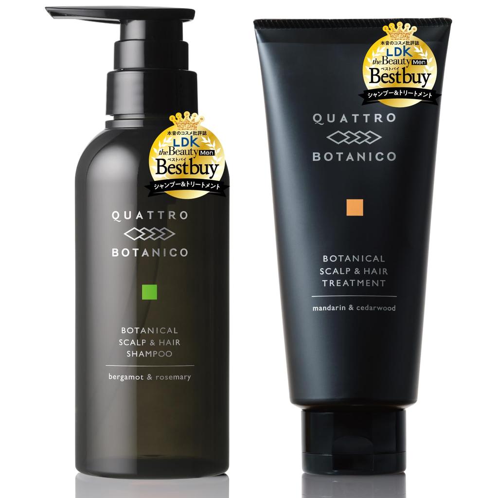 Этот продукт представляет собой набор из шампуней Quattro Botanico «Botanical Scalp & Hair Shampoo» и «Botanical Scalp & Hair Treatment».