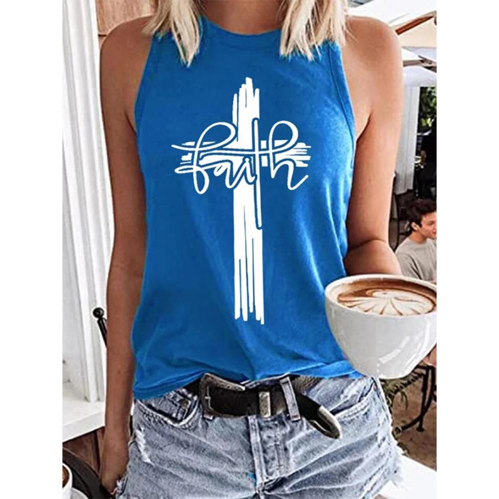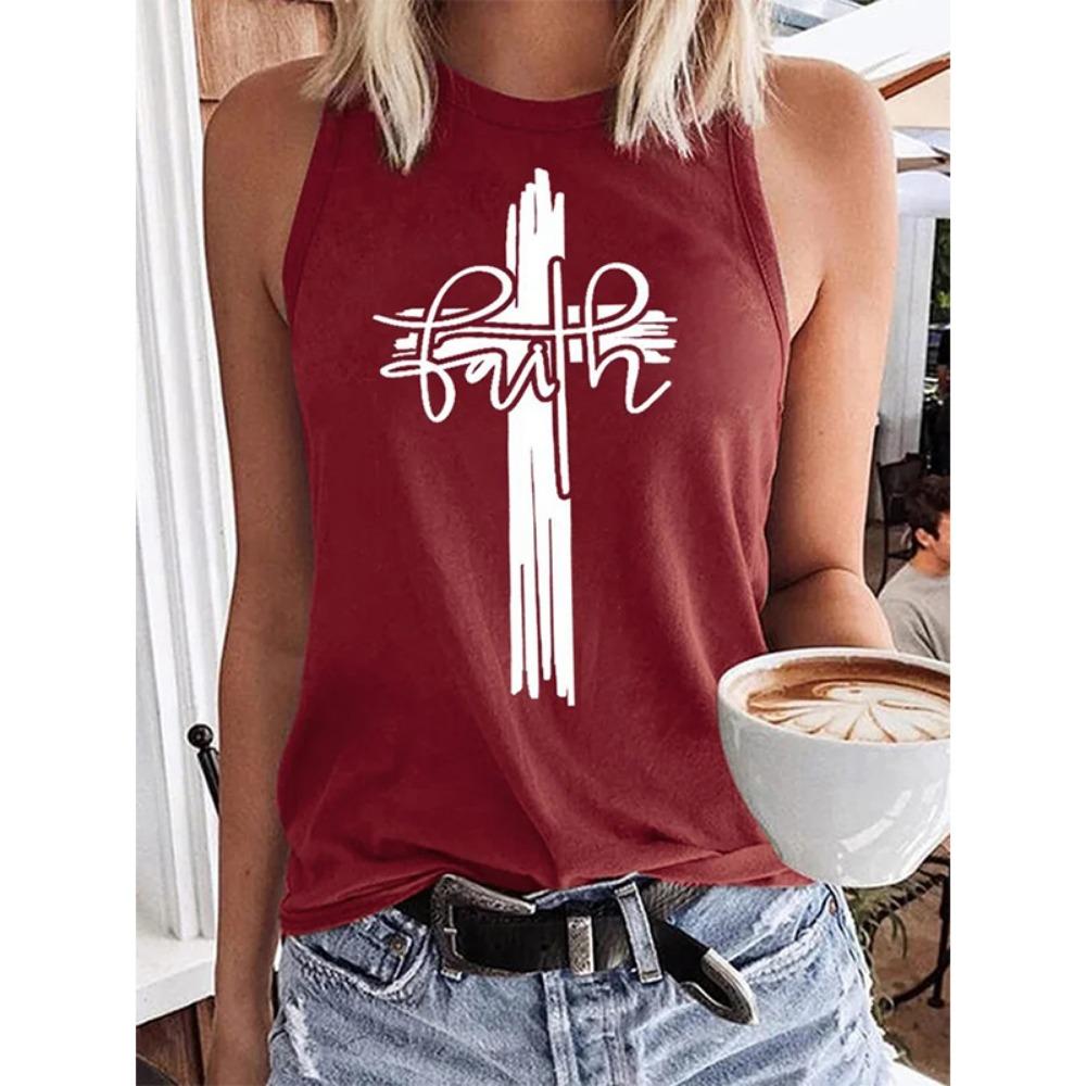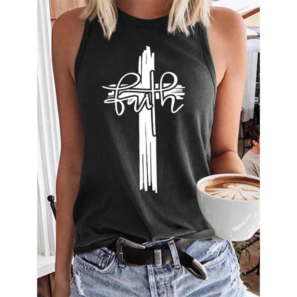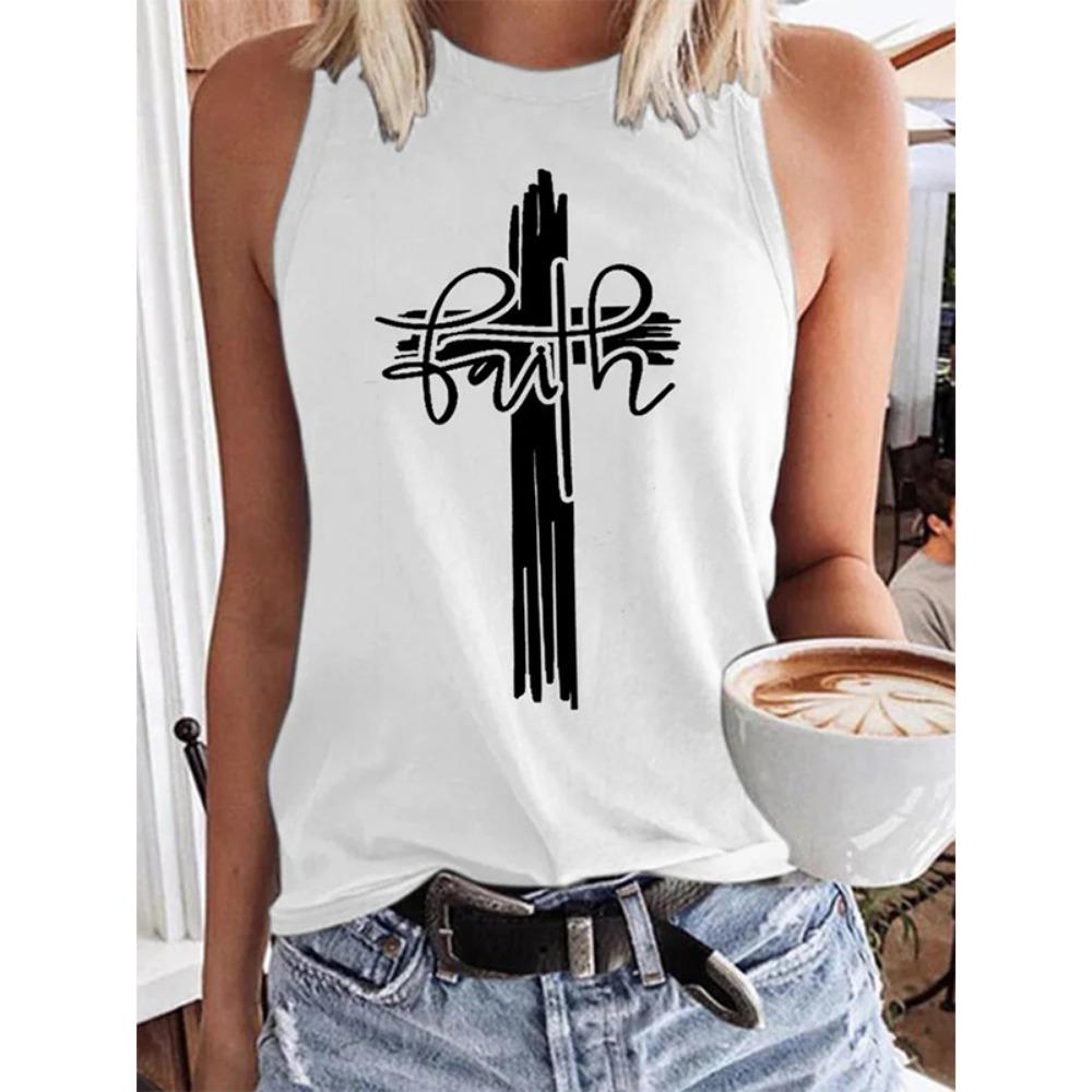Майка с 3D-принтом креста веры, христианская женская уличная одежда Y2k, топы оверсайз с круглым вырезом, жилет, без рукавов, с открытыми плечами, женская майка