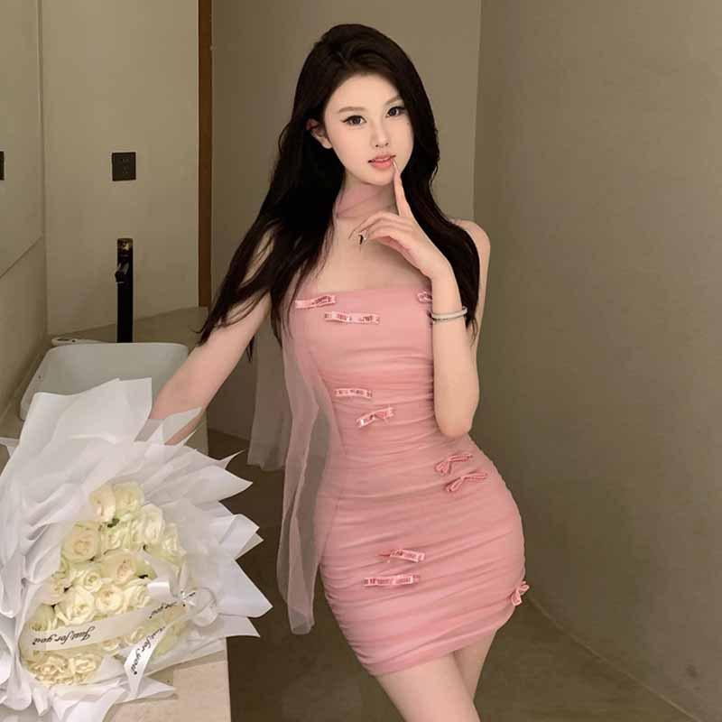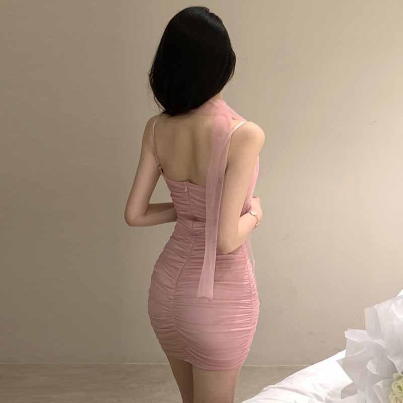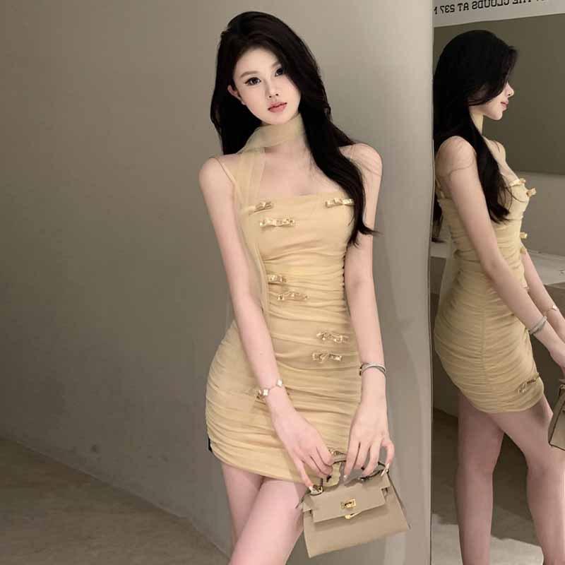 2025 модная новая женская одежда милое и сексуальное плиссированное сетчатое облегающее платье с открытой спиной