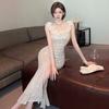 Высококачественное элегантное платье с рюшами и пайетками для женщин