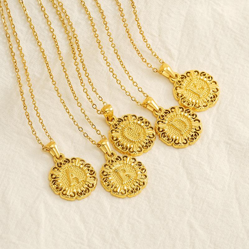 25 лет новой моды, титановая сталь, подвеска с буквой, цепочка для ключицы, ожерелье с круглым тисненым дизайном, персонализированное универсальное для мужчин и женщин