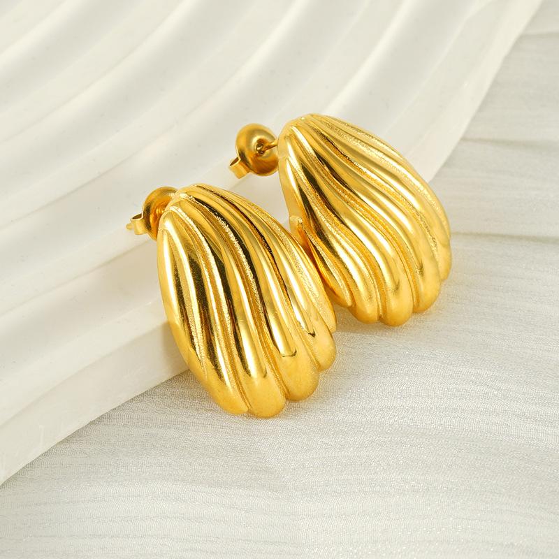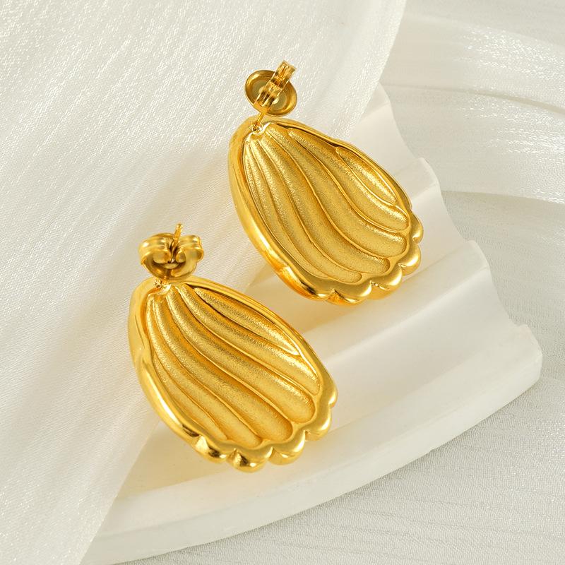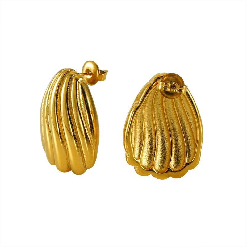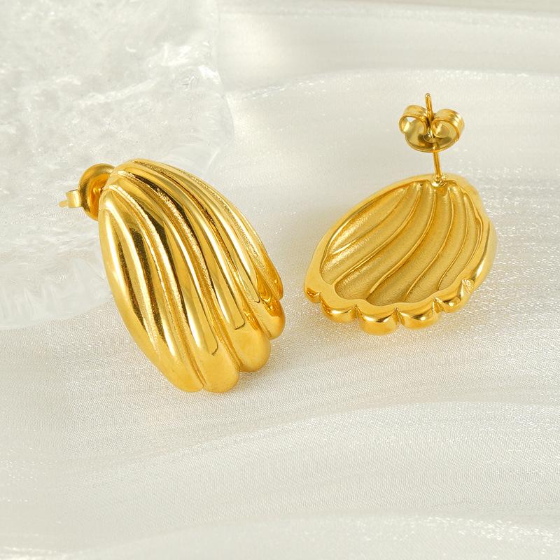 New Titanium Steel 18k Gold Stainless Steel Striped Shellfish Threaded Earrings Earrings Women