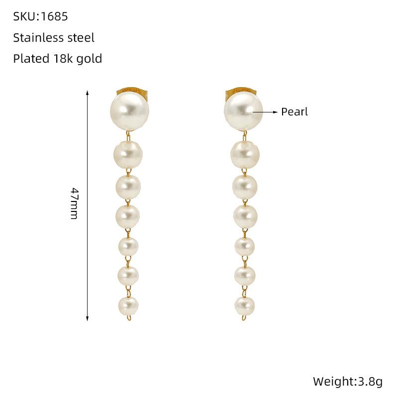Серьги с жемчужными кисточками, серьги-гвоздики из нержавеющей стали, серьги из титановой стали премиум-класса, позолоченные ювелирные изделия 18 карат для женщин