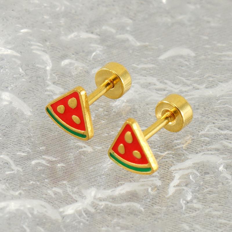 Новые модные серьги-гвоздики из нержавеющей стали с фруктами и арбузом, простые и универсальные серьги из титановой стали для женщин