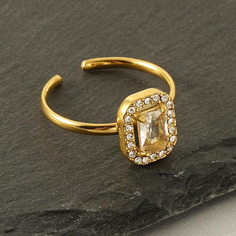 Кольцо из нержавеющей стали с золотым покрытием и бриллиантом, универсальное, 18 карат, регулируемое по размеру, простое кольцо из титановой стали, женское