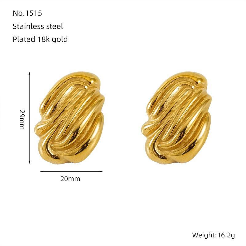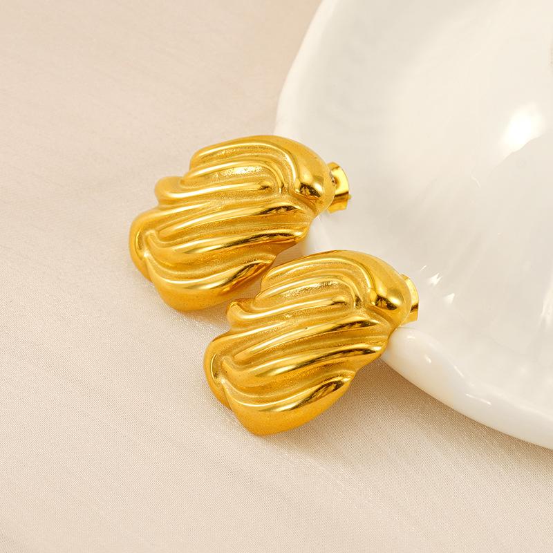 Нерегулярные плиссированные текстурированные серьги-гвоздики Trend Серьги-волны из нержавеющей стали 18 карат