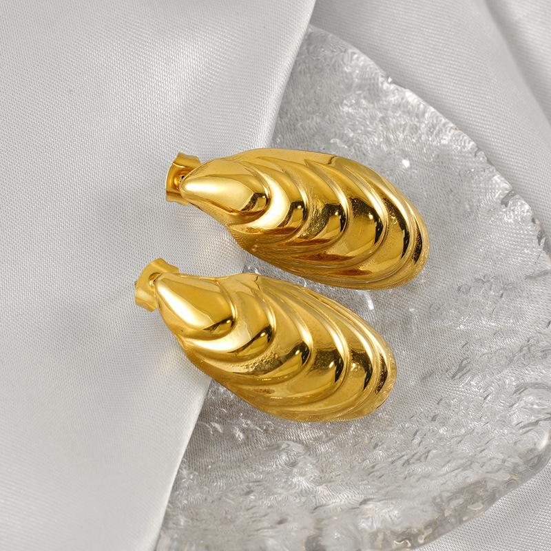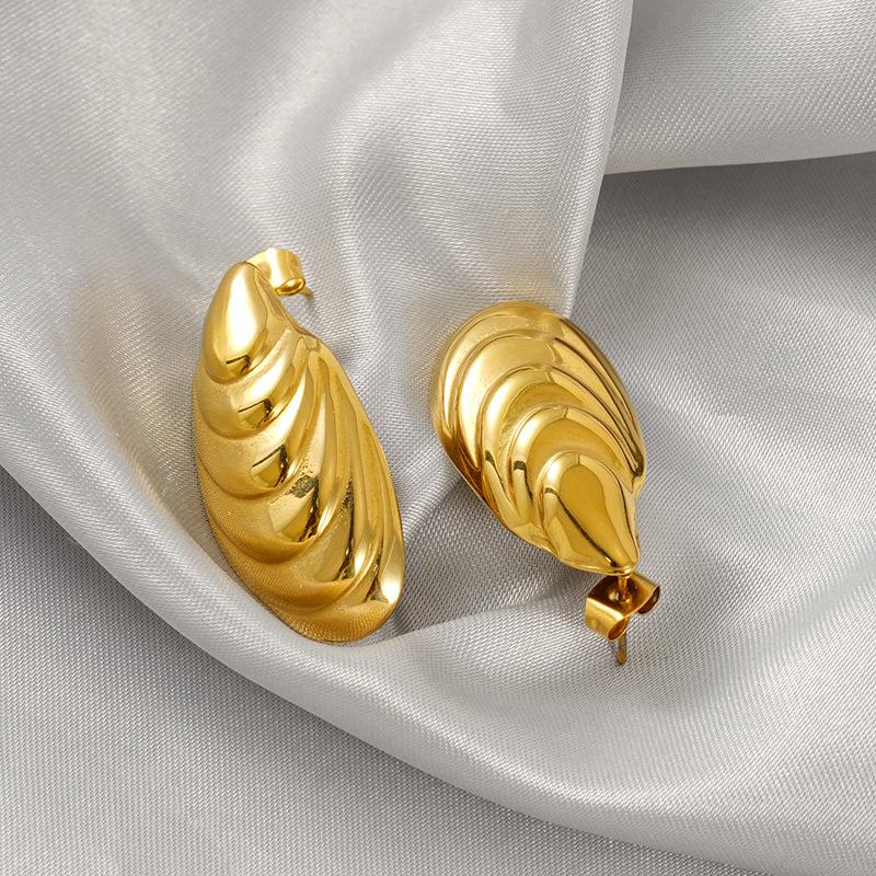 Модные нишевые серьги-пусеты из нержавеющей стали с простым тисненым круглым дизайном в виде ракушки