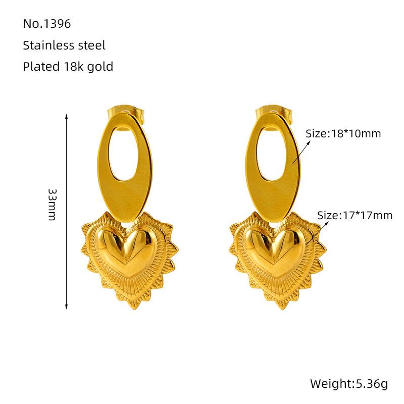 Fashion new stainless steel earrings retro love design titanium steel peach heart earrings women
