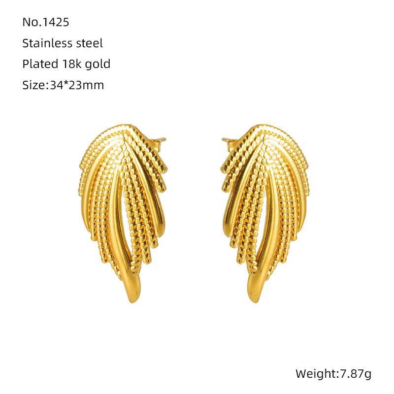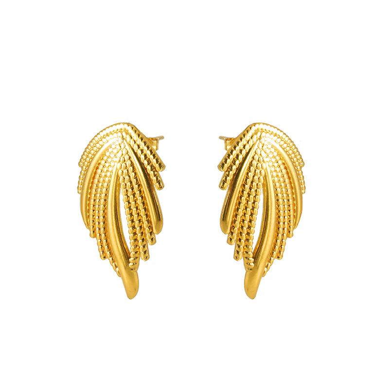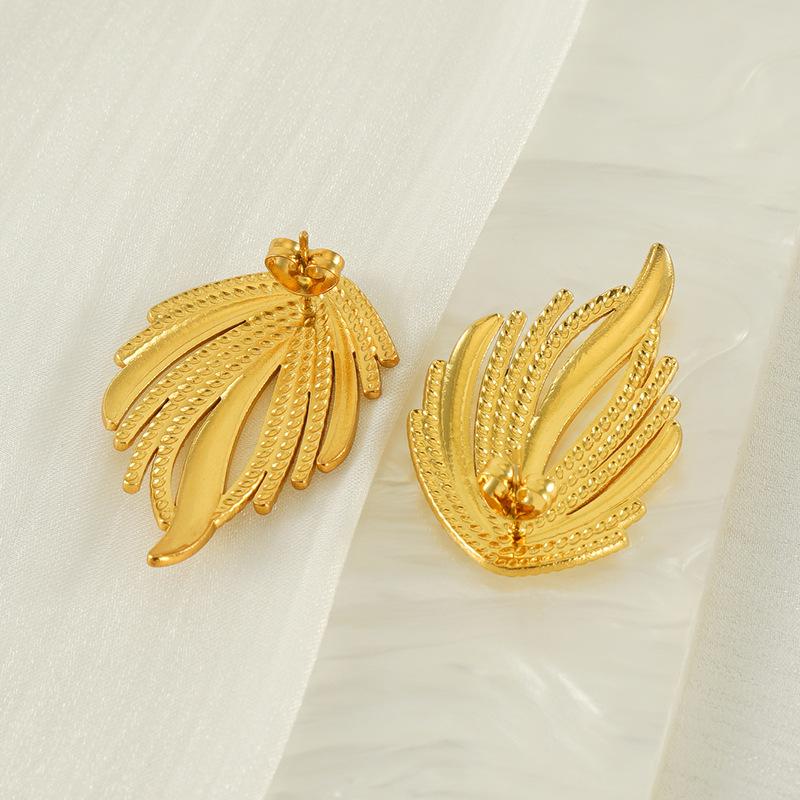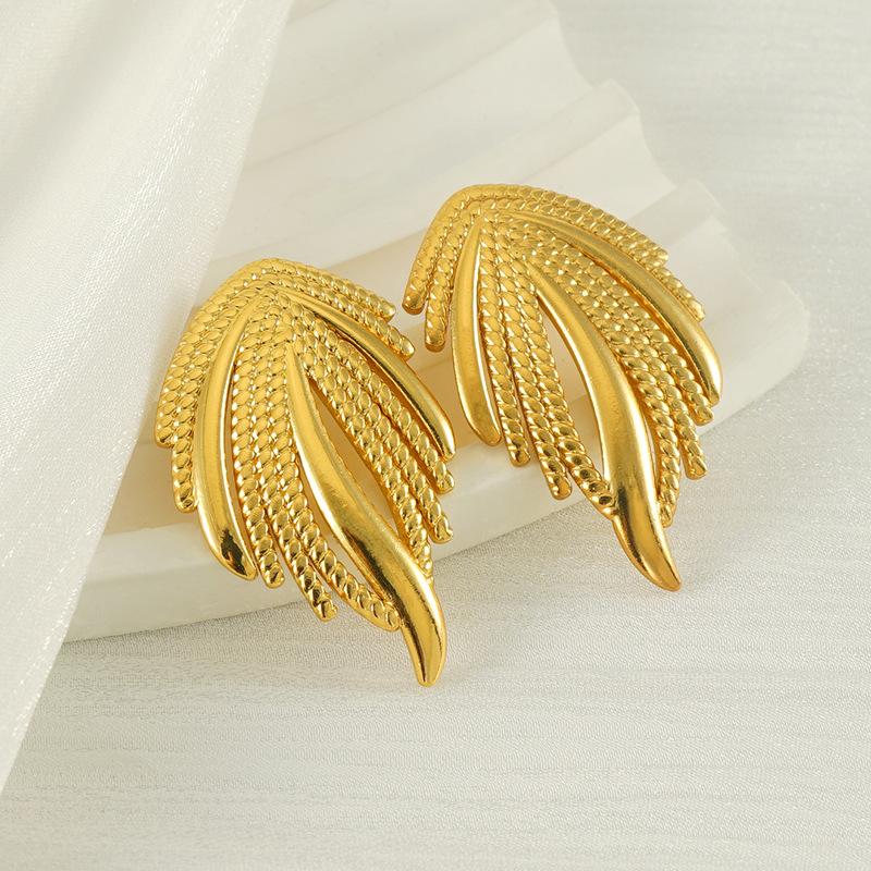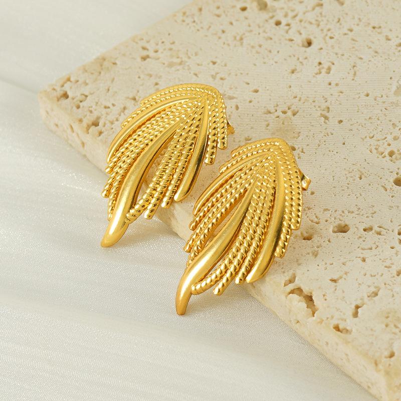 Серьги-пусеты из нержавеющей стали с покрытием из 18-каратного золота, с полосками в виде кукурузных зерен и перьев, женская мода, универсальные геометрические серьги