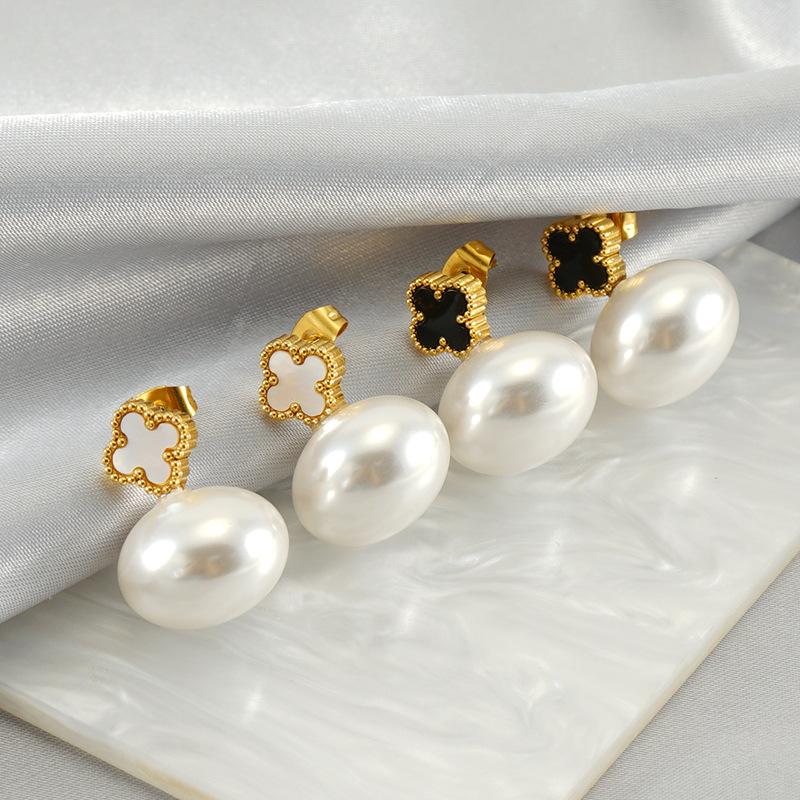 Модные французские серьги-пусеты из нержавеющей стали с барочным жемчугом, легкая роскошь, простые, универсальные, жемчужные серьги из титановой стали для женщин