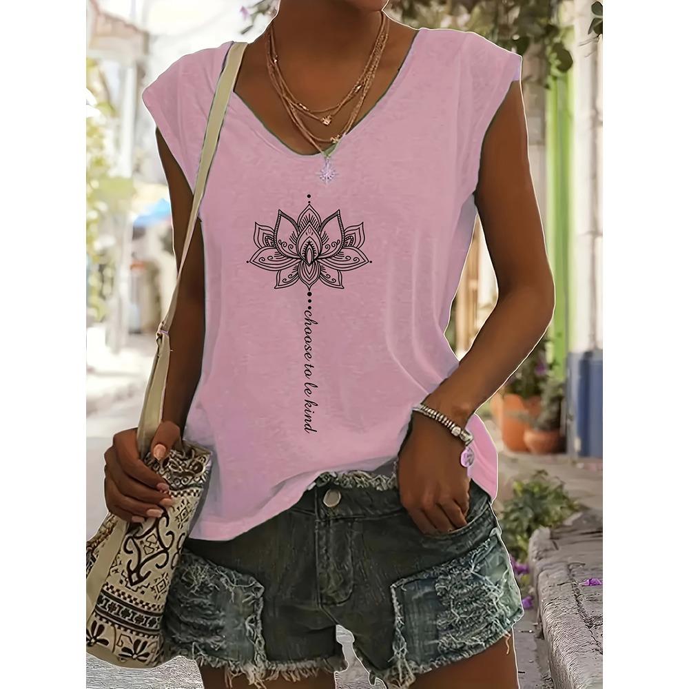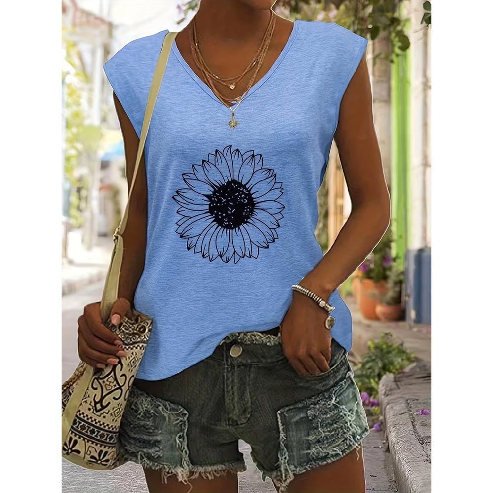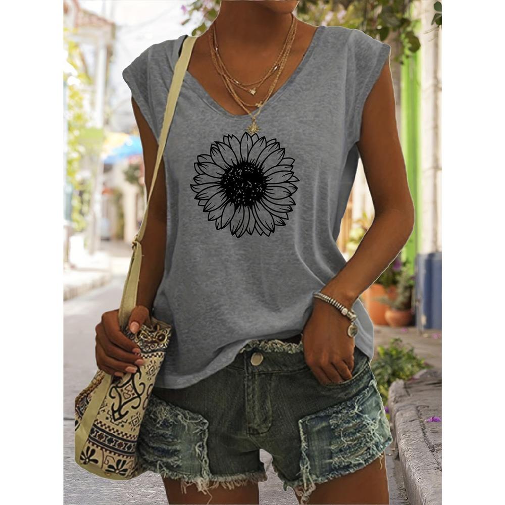 Майка женская футболка летняя модная одежда с V-образным вырезом цветочный принт топ свободный повседневный короткий рукав большой размер женская майка