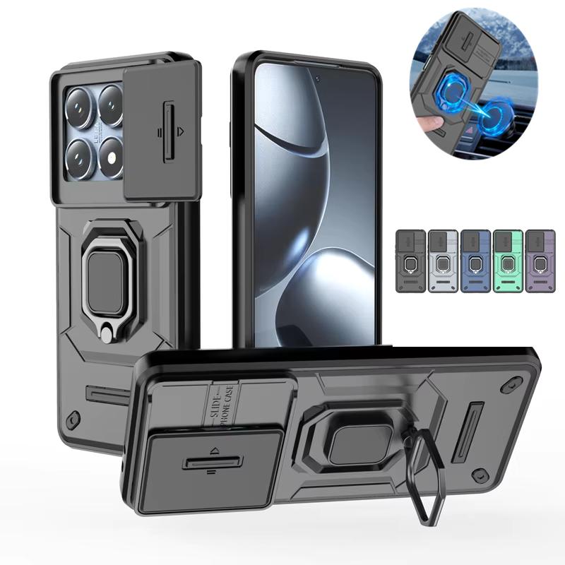 Armor Magnetic Ring Stand Funda для Xiaomi 14T Pro Mi 14T 5G Case Slide Camera Protection Cover для Mi14T 14TPro Capa