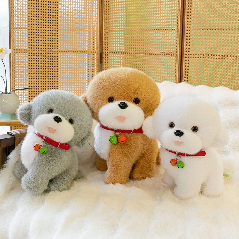 Мягкая имитация плюшевых игрушек для собак, сидящие мягкие игрушки, кукла-щенок, куклы-щенки с красным колокольчиком, детские подарки
