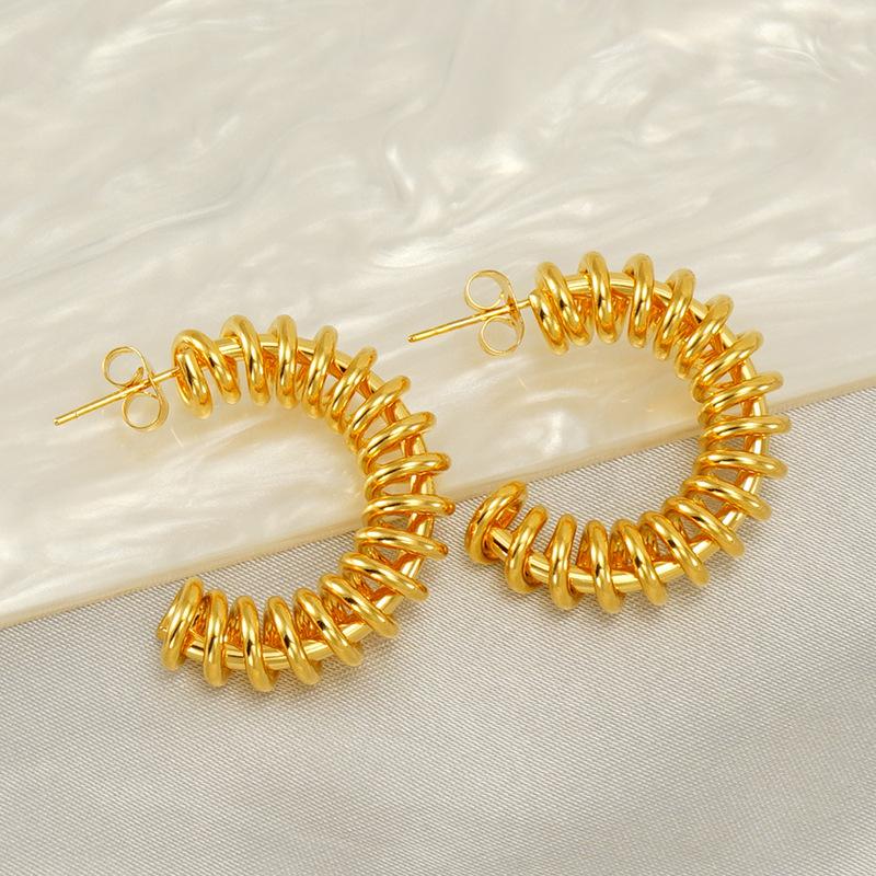 Новые серьги-пружины из нержавеющей стали C-Spring, стильные полые серьги-кольца из титановой стали