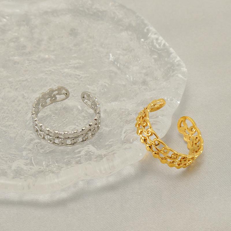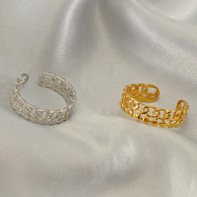 New fashion stainless steel hollow ring niche light luxury fashion design titanium steel ring opening adjustable