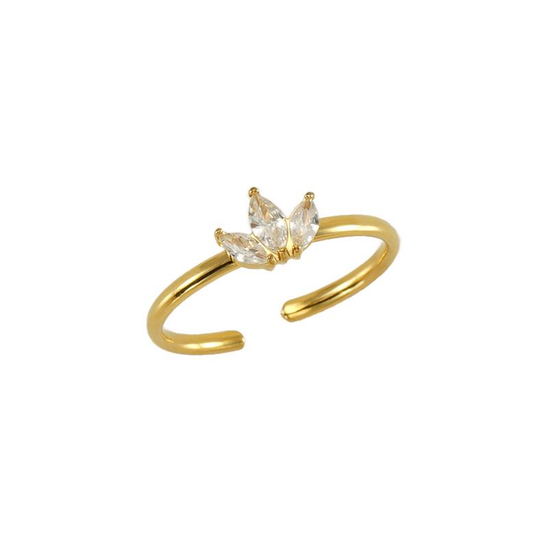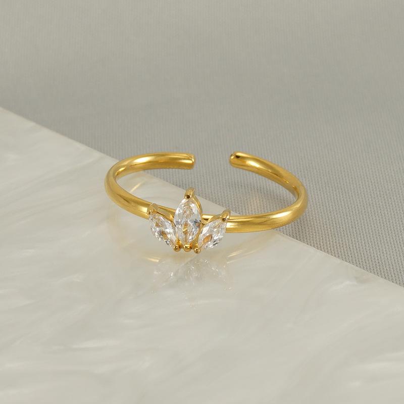 New stainless steel zircon maple leaf ring women's fashion versatile titanium steel light luxury ring