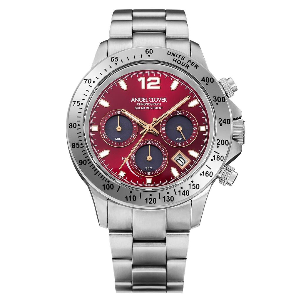 Часы Angel Clover LUCE SOLAR на солнечной батарее, водонепроницаемость 100 м, минеральное стекло, красный циферблат, нержавеющая сталь NTCS44SSWH, серебристый [AngelClover] Мужские