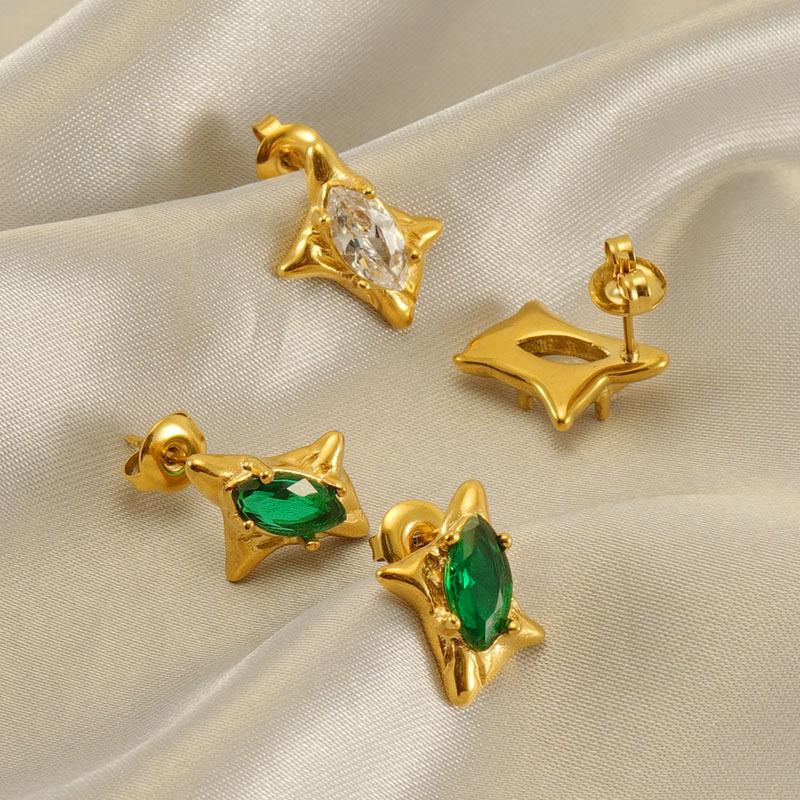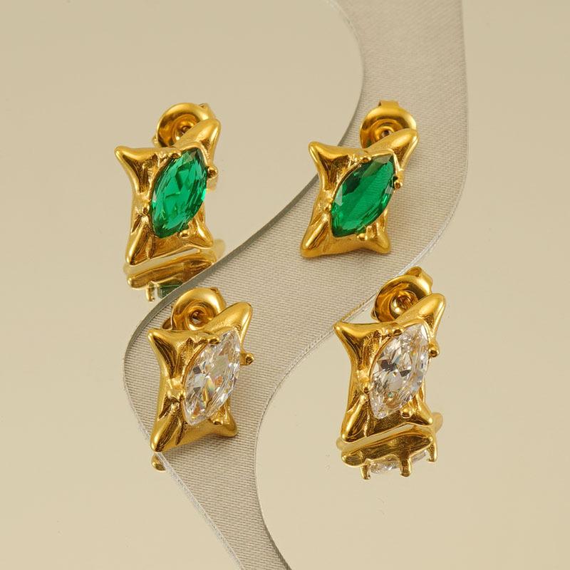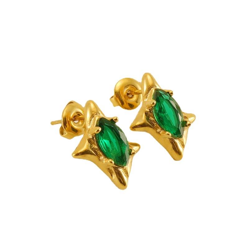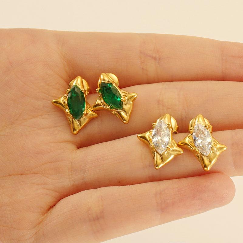 Модные серьги-гвоздики из нержавеющей стали в стиле ретро с цирконием, зеленые французские серьги премиум-класса, легкие роскошные серьги для женщин