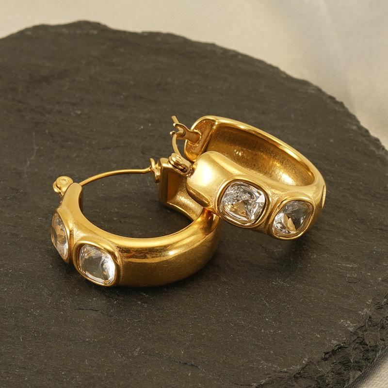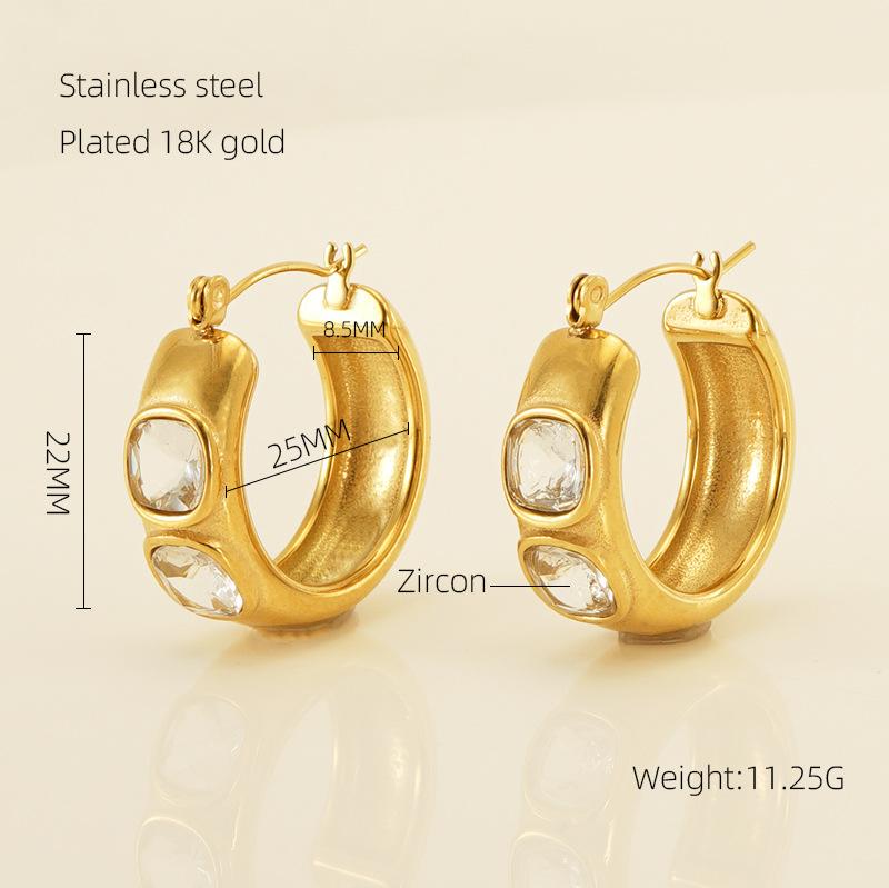Новые гладкие серьги из нержавеющей стали с покрытием из 18-каратного золота цирконием, серьги в нишевом дизайне класса люкс.