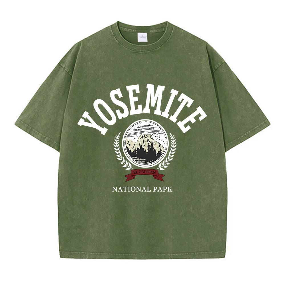 Женские хлопковые футболки с потертостями, модный дизайн, принты на папках Yosemite National, с коротким рукавом, состаренный, с круглым вырезом, свободная уличная одежда