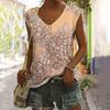 Летний женский жилет, свободный топ без рукавов, футболка с цветочным узором, модный V-образный вырез, короткий рукав, большой размер, повседневный жилет, женская одежда
