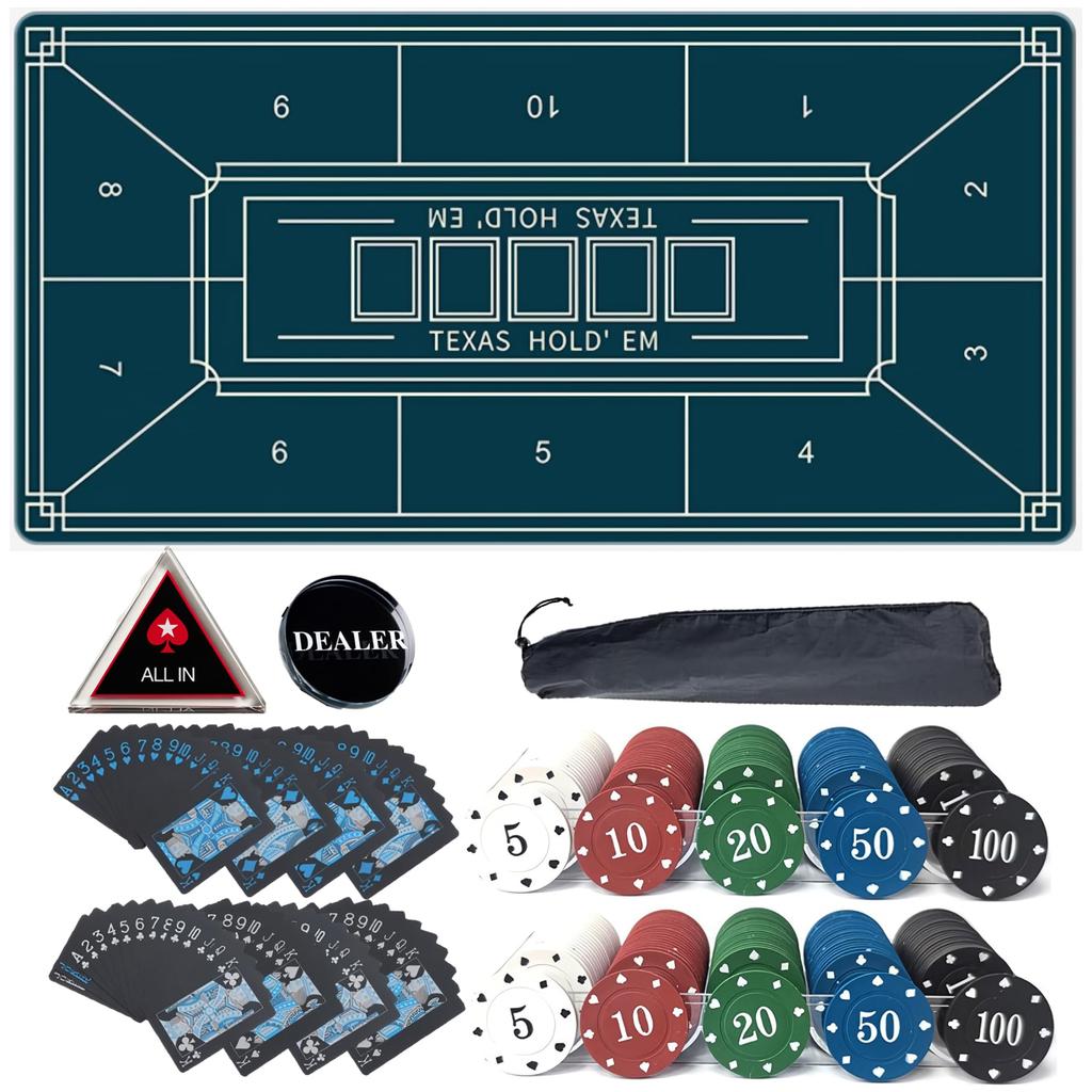 Для игры в покер полный 180 см x 90 коврик для покера 100 фишек x 2 комплекта по 54 штуки водонепроницаемый пластиковый игровой дилер кнопка ALL IN кейс для хранения покер казино набор белый