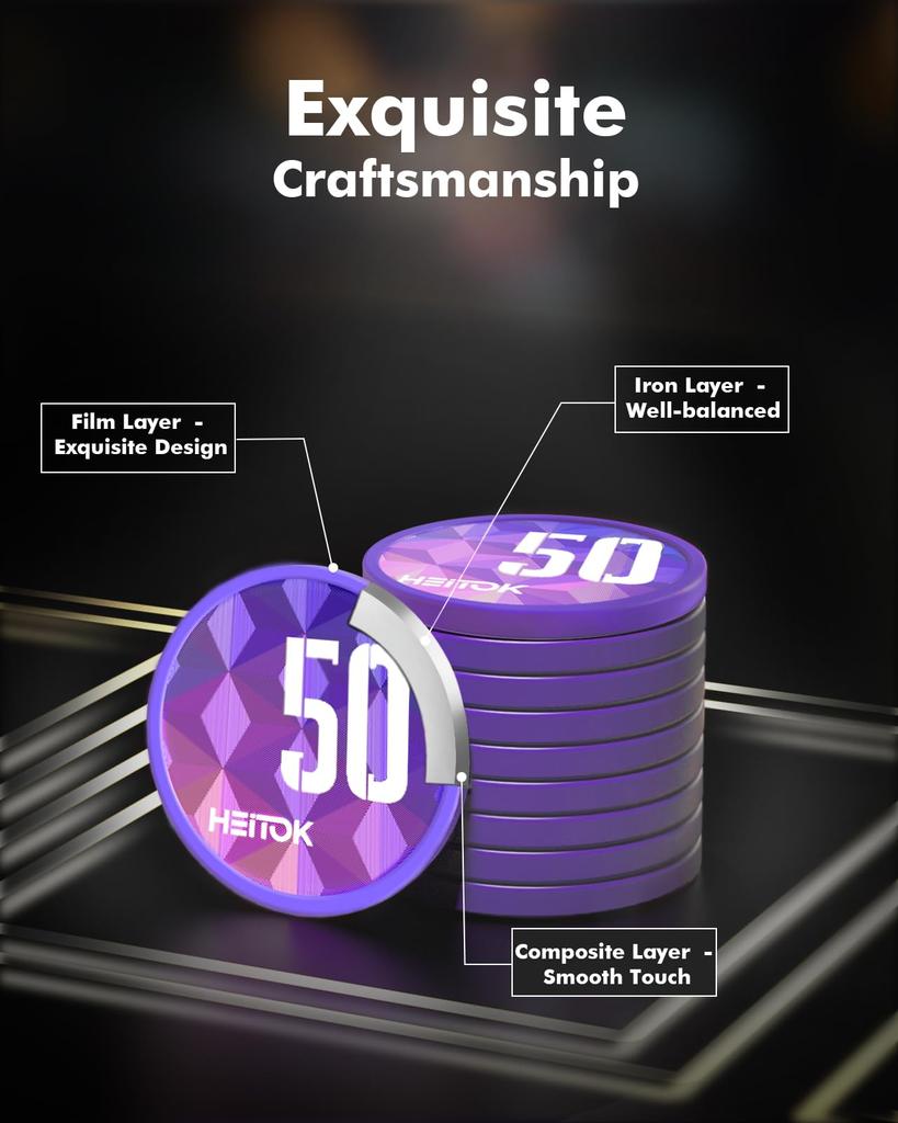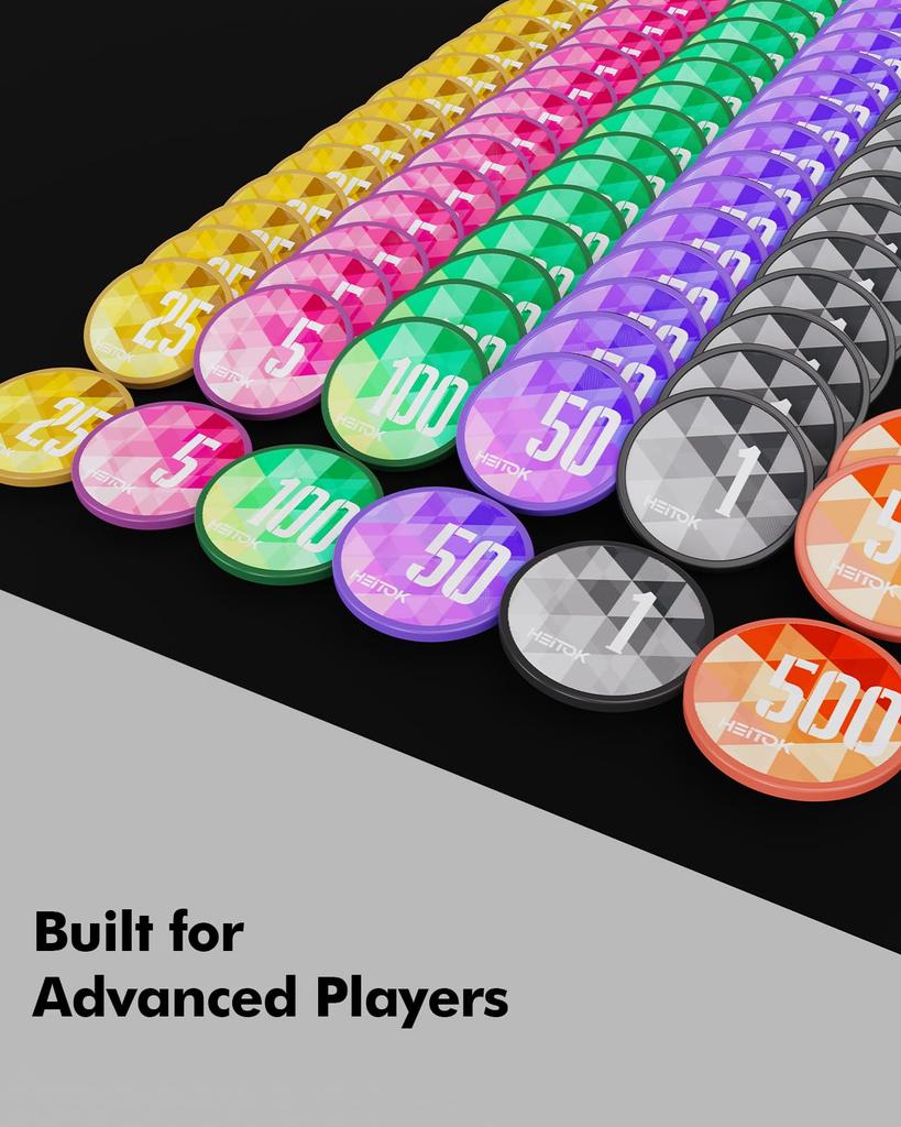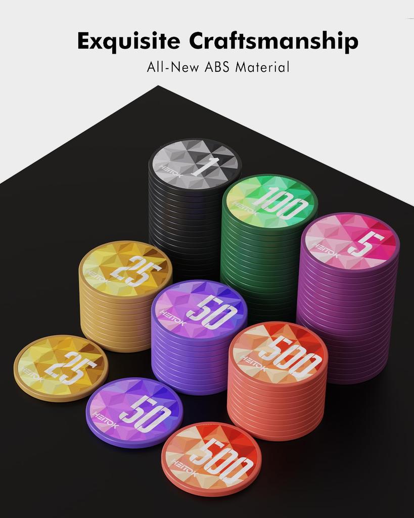 Фишки для покера HEITOK, набор из 300 фишек с номерами, казино-фишки, в комплекте 2 колоды игральных карт и 5 игральных костей, ABS-фишки в алюминиевом чемодане 11,5 г