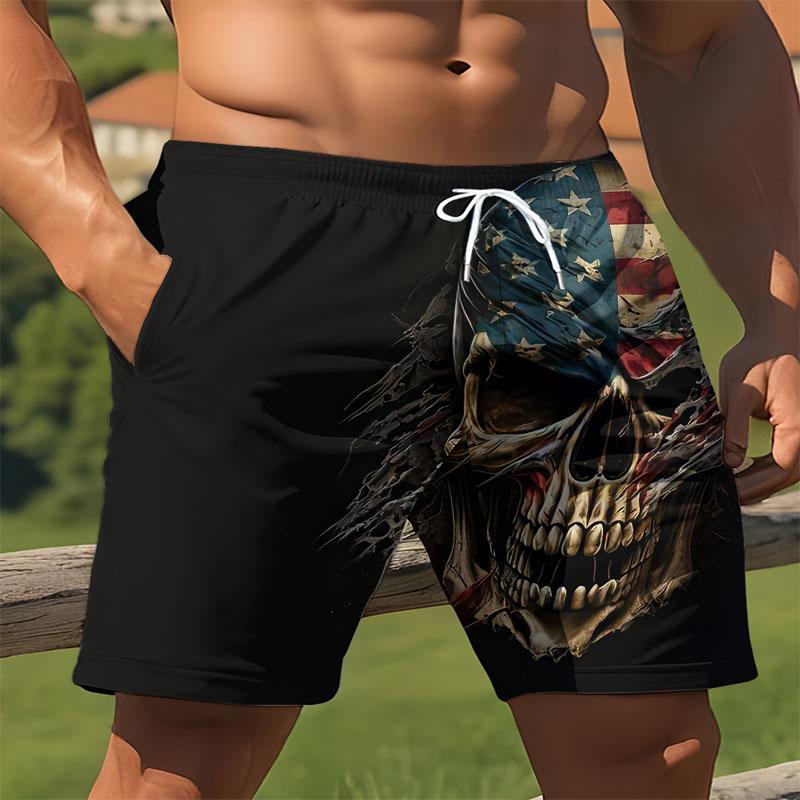 Летние мужские шорты для спорта на открытом воздухе с принтом черепа, пляжные повседневные плавки на шнурке, идеально подходят для отдыха на выходных