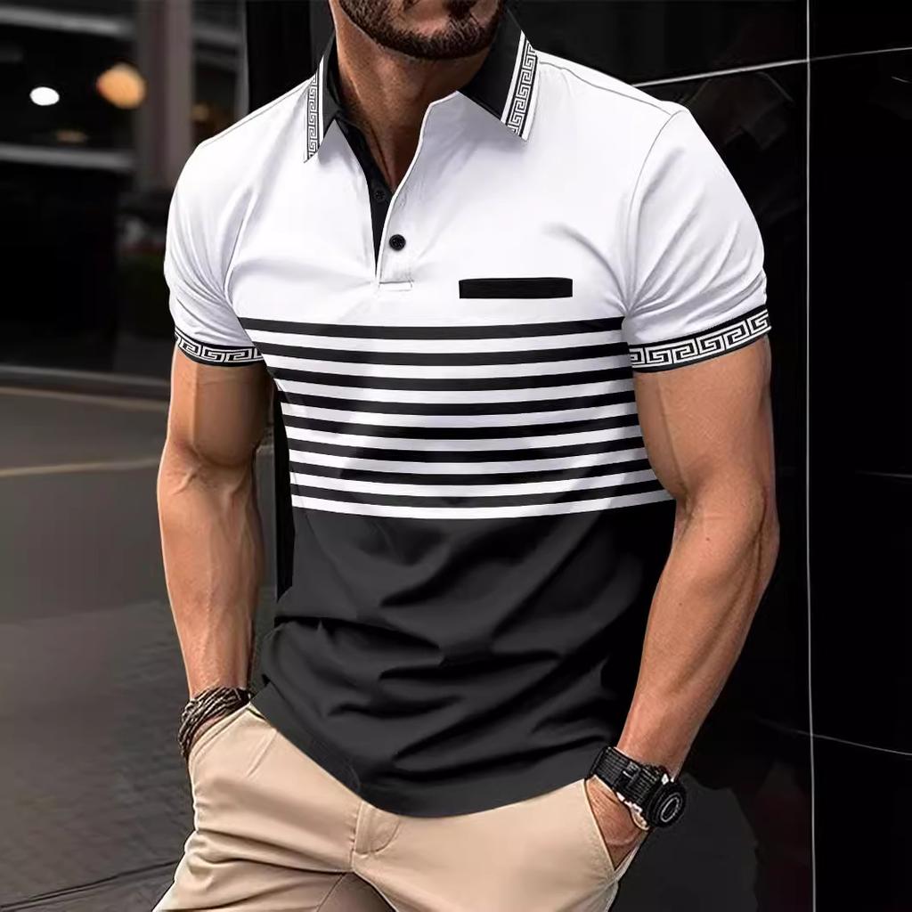 Летняя модная мужская рубашка поло с воротничком и лацканами, мужские спортивные топы с коротким рукавом