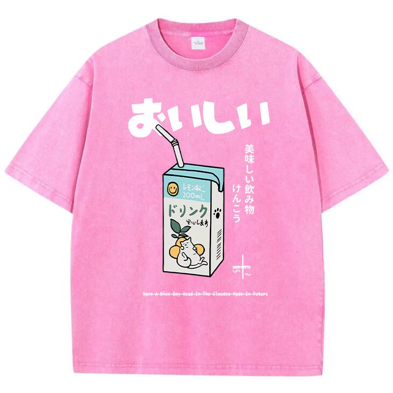 Повседневная женская хлопковая стираная футболка с принтом в виде мультфильма «Питьевой напиток» с коротким рукавом и свободным круглым вырезом, винтажная женская одежда — купить товар онлайн с бесплатной доставкой по всему миру!