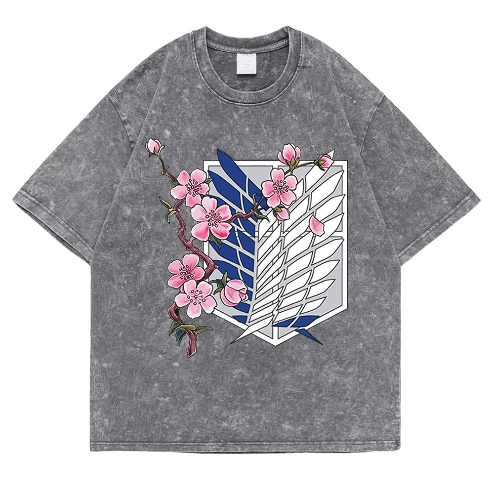 Цветы вишни и крылья свободы, вымытая ретро-футболка со снегом, мужская модная хлопковая одежда, футболки, хип-хоп, свободные повседневные топы