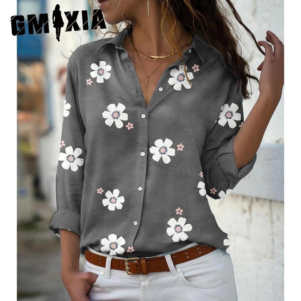 GMXIA Женская мода повседневная осень-зима осень-зима длинный рукав воротник поло блузки и рубашки
