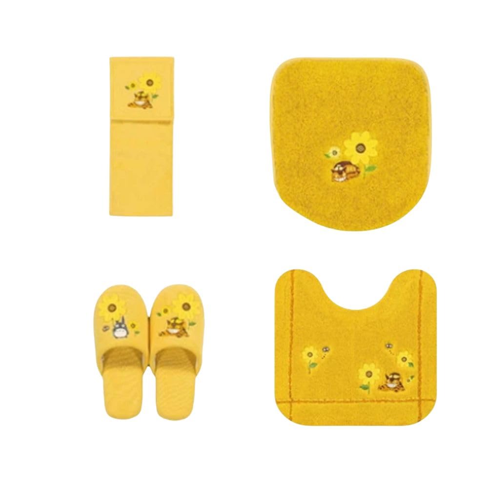 НОВЫЙ Мой сосед Тоторо Цветок Автобусная остановка Регулярная уборка Крышка сиденья унитаза Коврик для унитаза Тапочки Чехол для держателя бумаги Набор из 4 предметов и