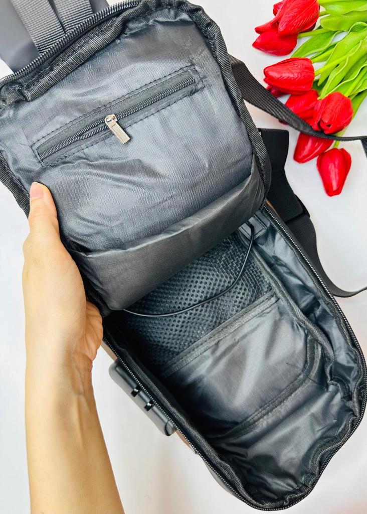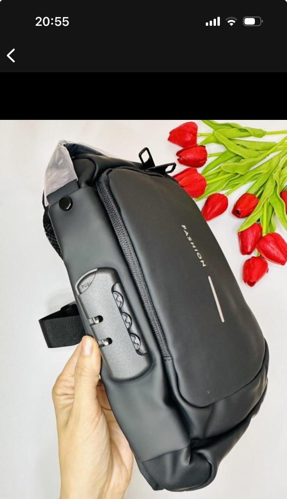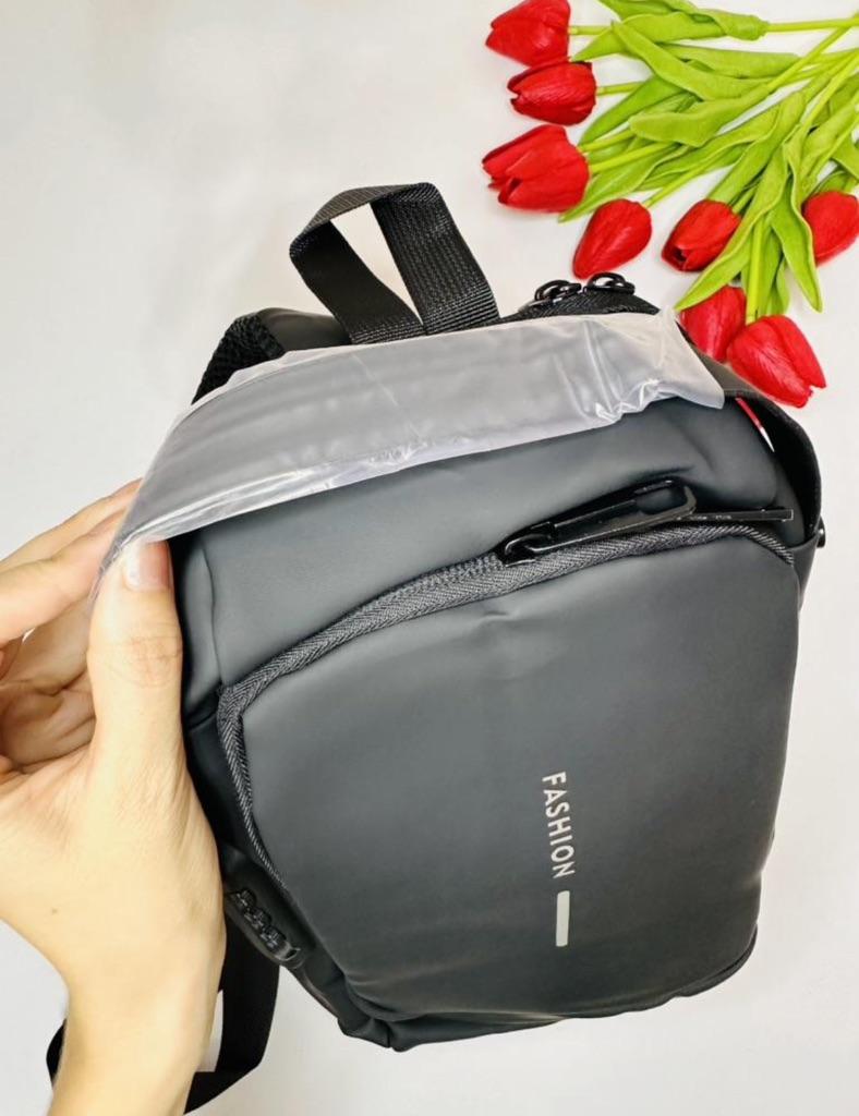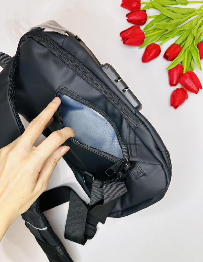 Мужская сумка / рюкзак У продавца предоставлена на выбор в 4 расцветках. Размер: 31*10*17см. Изготовлена из плотного водоотталкивающего материала. Рюкзак имеет основной отдел, застегивающийся на молнию, а также несколько дополнительных карманов. Есть тайный отсек с обратной стороны, который позволяет надежно спрятать важные вещи: документы, ключи, купюры. Сумка имеет длинный ремешком для плечевой фиксации, который может использоваться в двух положениях: на одно плечо (классический вариант рюкзака) или через плечо (вариант «слинг»). Дополнительная ручка в основе изделия позволяет носить сумку в руках. Сумка оснащена кодовым замком, блокирующим доступ к центральному отсеку рюкзака. Такое решение позволяет оградить личные вещи от лишнего внимания окружающих, в том числе мошенников. Замок является дополнительной опцией для использования при необходимости. Также на сумке есть внешний разъем для быстрого доступа к зарядке телефона прямо во время движения. Можно держать повербанк прямо внутри рюкзака и просматривать фото друзей или читать новости с телефона с параллельной подзарядкой девайса. Качество на высоте: фурнитура прочная, материал добротный, пошив аккуратный. Сумка понравилась. К покупке смело РЕКОМЕНДУЮ 👍