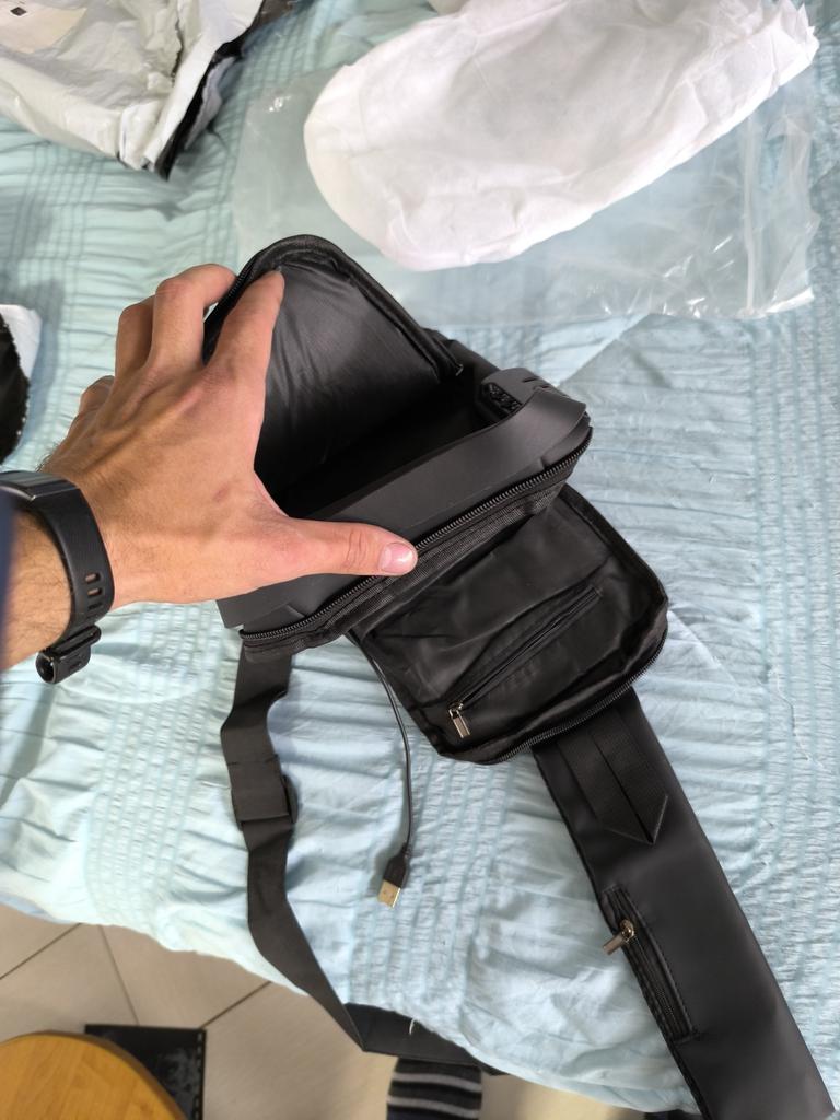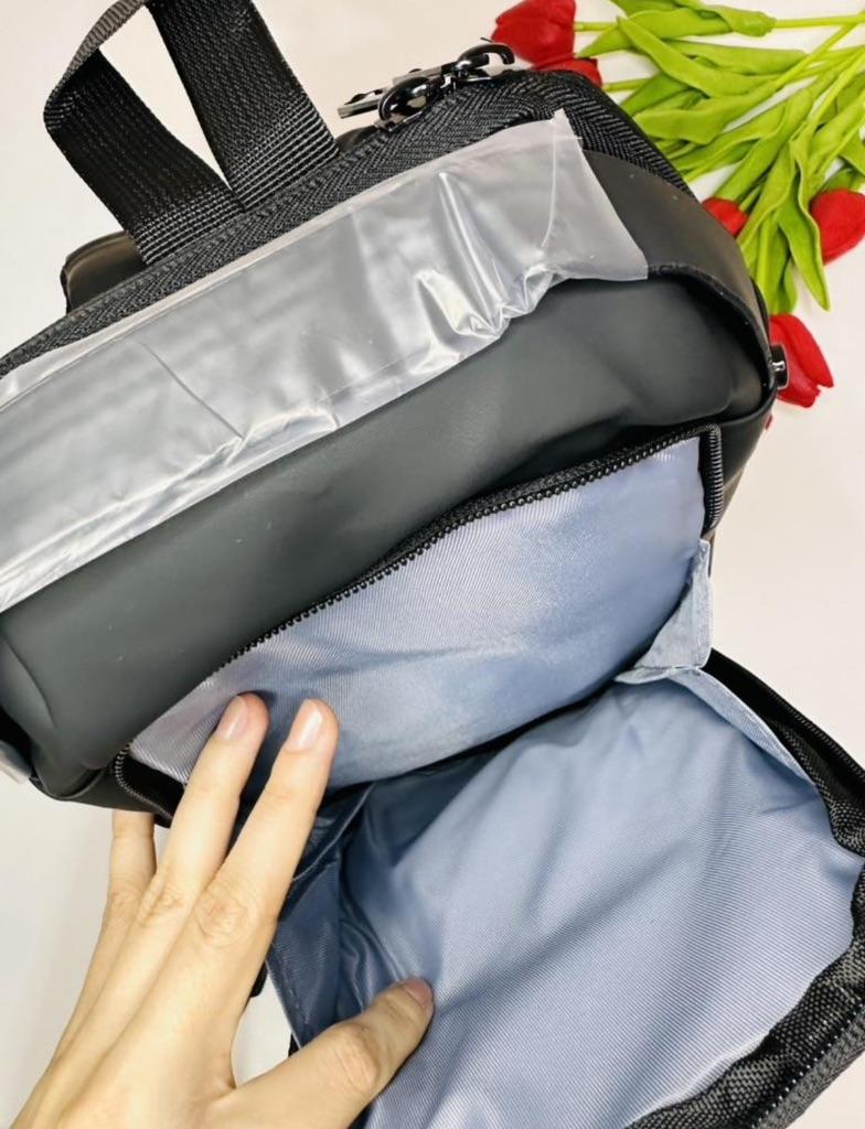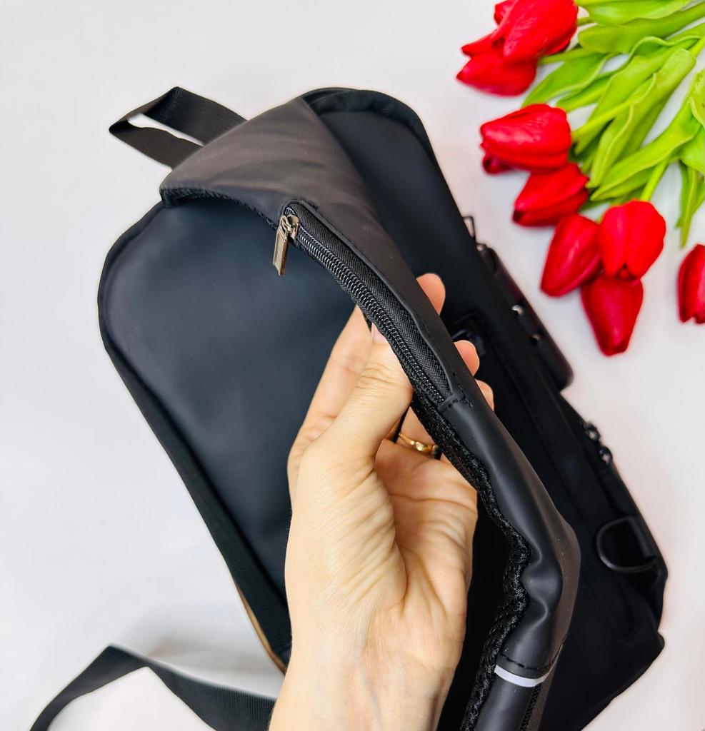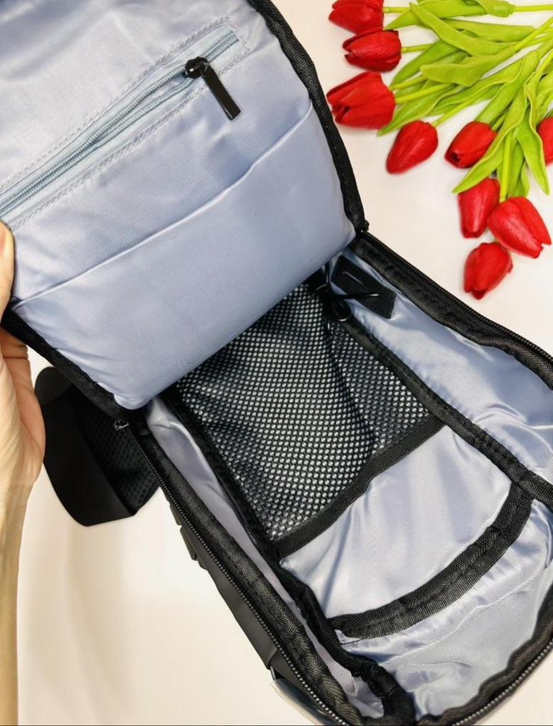 Мужская сумка / рюкзак У продавца предоставлена на выбор в 4 расцветках. Размер: 31*10*17см. Изготовлена из плотного водоотталкивающего материала. Рюкзак имеет основной отдел, застегивающийся на молнию, а также несколько дополнительных карманов. Есть тайный отсек с обратной стороны, который позволяет надежно спрятать важные вещи: документы, ключи, купюры. Сумка имеет длинный ремешком для плечевой фиксации, который может использоваться в двух положениях: на одно плечо (классический вариант рюкзака) или через плечо (вариант «слинг»). Дополнительная ручка в основе изделия позволяет носить сумку в руках. Сумка оснащена кодовым замком, блокирующим доступ к центральному отсеку рюкзака. Такое решение позволяет оградить личные вещи от лишнего внимания окружающих, в том числе мошенников. Замок является дополнительной опцией для использования при необходимости. Также на сумке есть внешний разъем для быстрого доступа к зарядке телефона прямо во время движения. Можно держать повербанк прямо внутри рюкзака и просматривать фото друзей или читать новости с телефона с параллельной подзарядкой девайса. Качество на высоте: фурнитура прочная, материал добротный, пошив аккуратный. Сумка понравилась. К покупке смело РЕКОМЕНДУЮ 👍