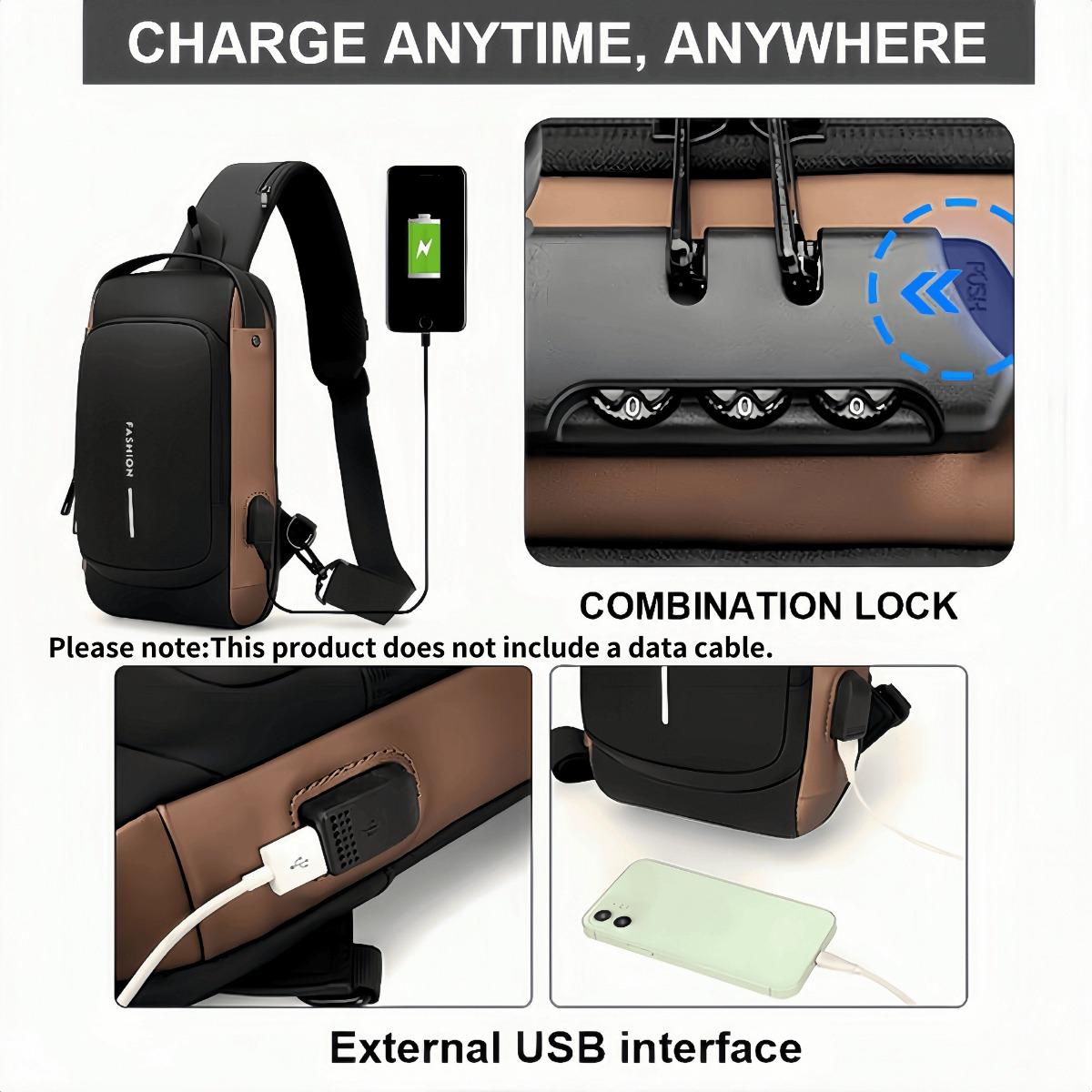 Мужская противоугонная сумка с кодовым замком на груди - с USB-портом для зарядки и кодовым замком, стильная повседневная спортивная сумка через плечо для мотоцикла