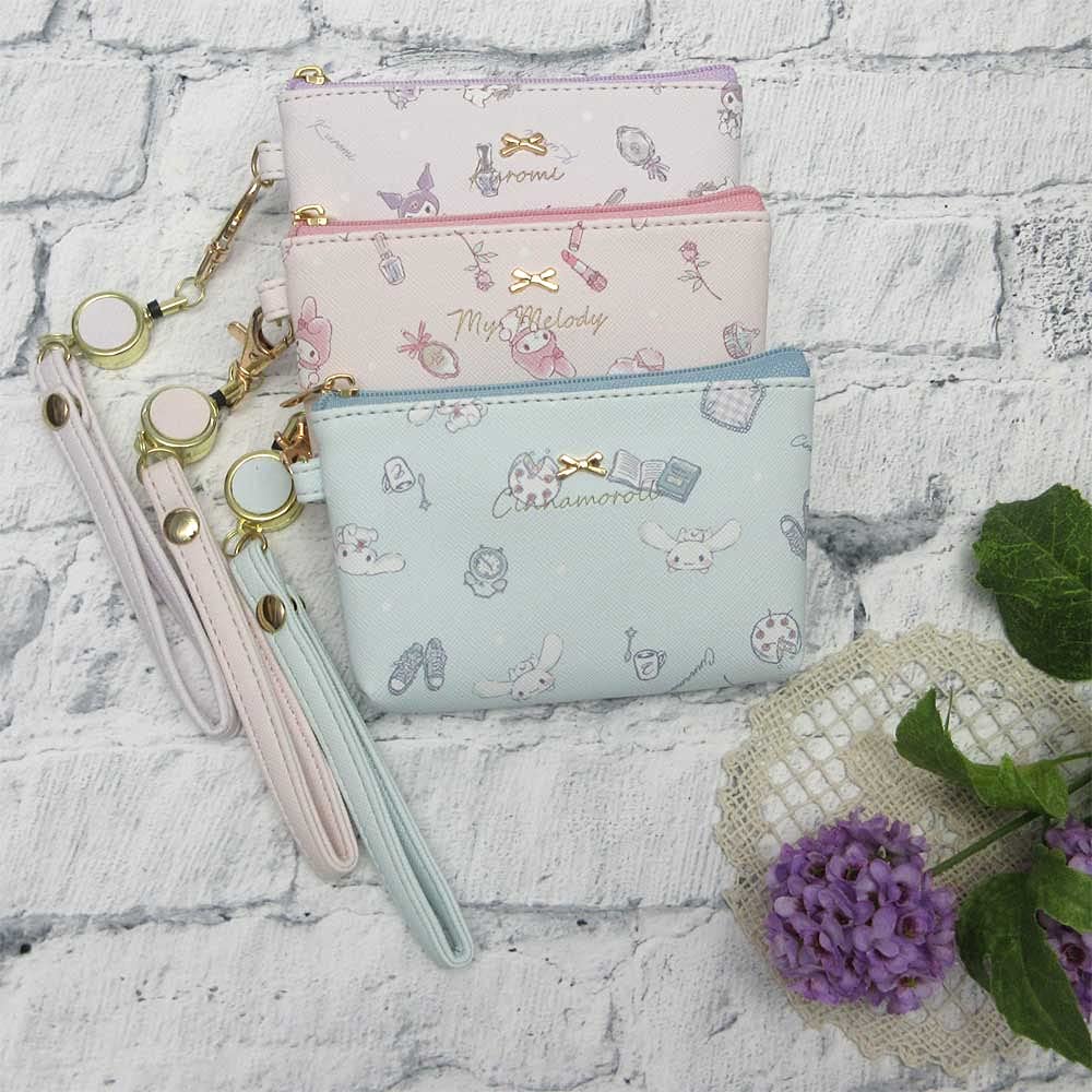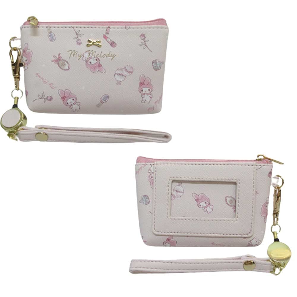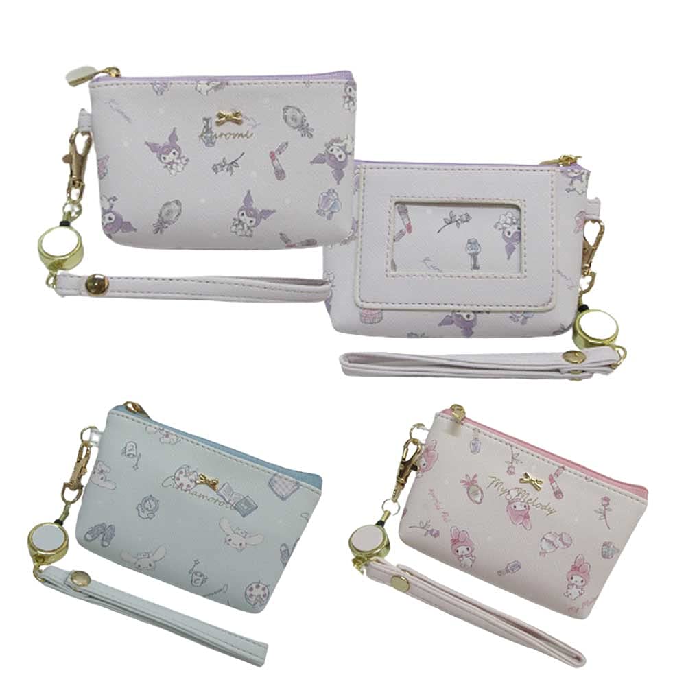 Sanrio Pass Case with Reel Goods SANRIO Character Coin Wallet Miscellaneous Goods Synthetic Leather Stylish Women Ladies SR1-10CN-MM (CN/Cinnamon