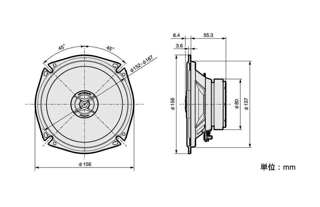 Динамик PIONEER 17 см, коаксиальный, 2-полосный, с высоким разрешением, совместимый с Carrozzeria TS-F1740