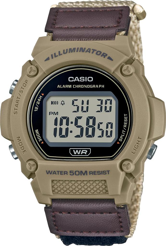Casio Стандартные цифровые часы бежевого цвета с застежкой-липучкой, модель Overseas [Casio] W-219HB-5AV мужские [Товар]
