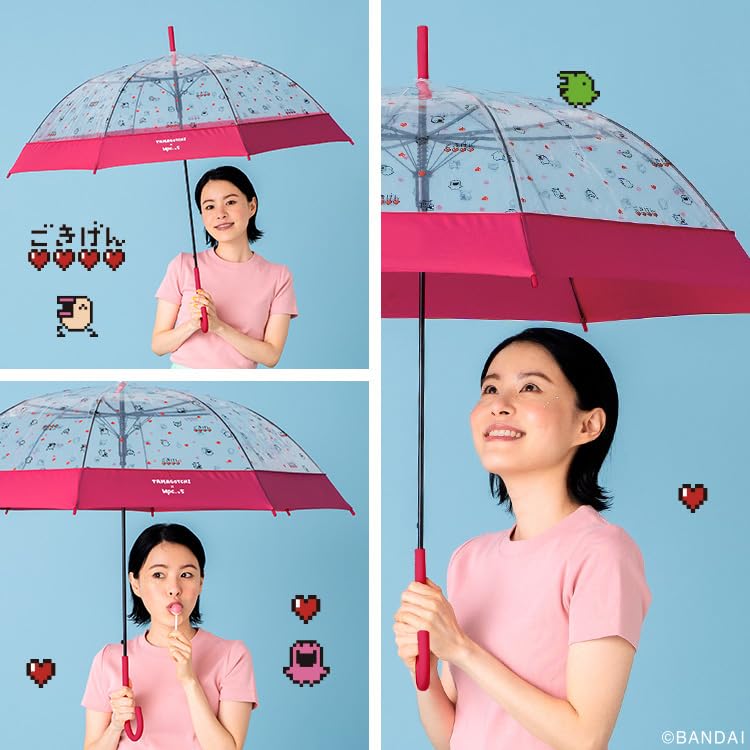 Тамагочи x Pink Morning Длинный зонт 61 см Большой Прыгающий Персонаж Совместная игра Стильный Милый Блестящий Ретро Wpc. [Виниловый зонт] Wpc.cchi (Хорошо
