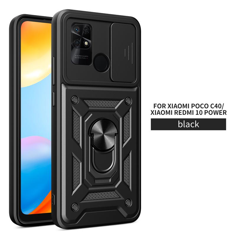 Чехол для Poco C40, противоударный чехол для телефона с выдвижной камерой, чехол для телефона Xiaomi Poco C40 PocoC40 C 40, магнитный держатель с кольцом, задняя крышка