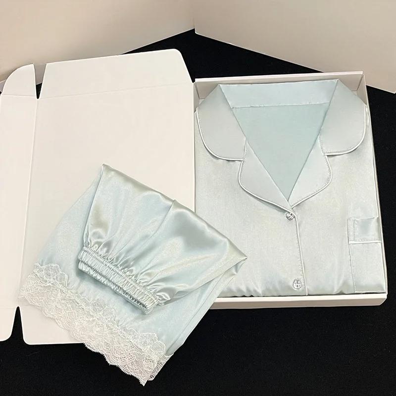 Сексуальная ночная одежда, женская пижама, комплект с короткими рукавами, шорты с отворотами, кардиган, женская домашняя одежда, сексуальное кружево, простая однотонная пижама — купить товар онлайн с бесплатной доставкой по всему миру!