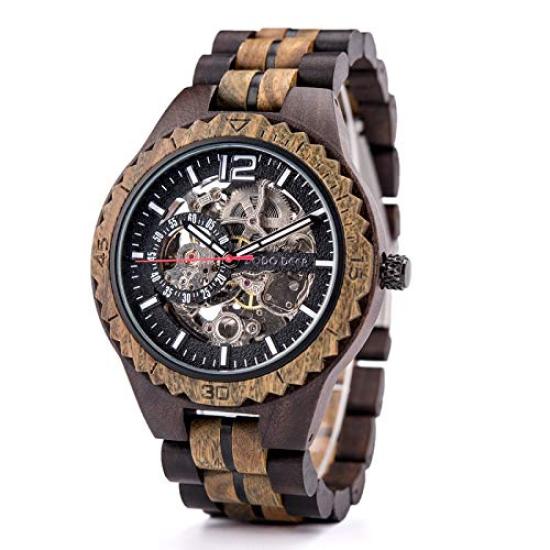 DODO DEER Деревянные часы Механические Автоматические Скелетон Светящиеся индексы Деревянная подарочная коробка Лучшие Автоматические Деревянные Часы Мужские Женские (Д18-1 (Мужской))