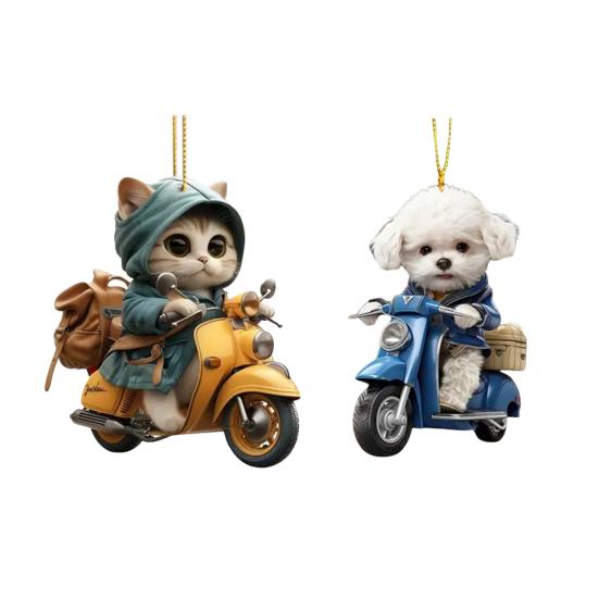 Эта стильная подвеска с изображением котенка или щенка, едущего на мотоцикле, добавит современный и изысканный штрих к вашему праздничному оформлению.. Изготовленное из высококачественного акрилового материала, это легкое и прочное украшение обеспечит вам долгое удовольствие.