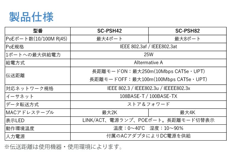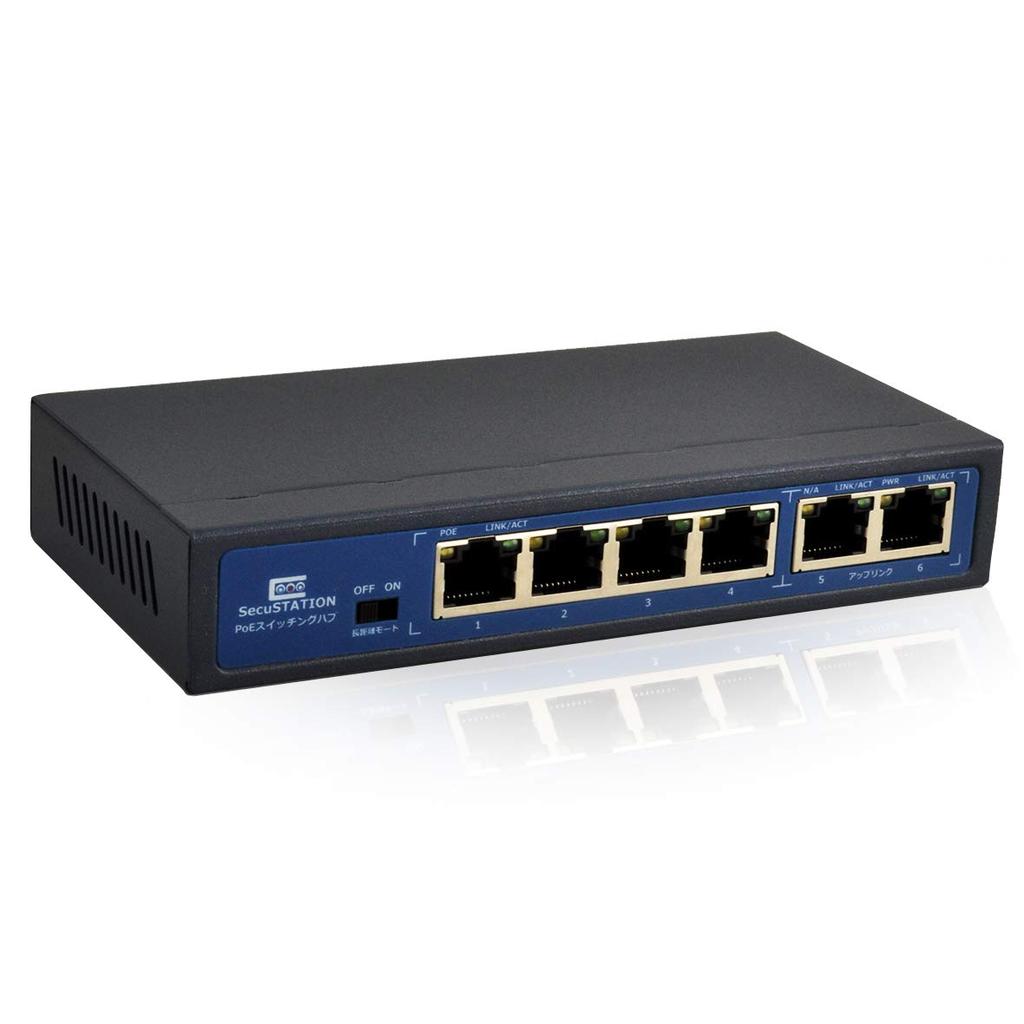 SecuSTATION Switching Hub PoE Hub Japanese Manufacturer PoE Power Supply Compatible Maximum 250m 4 Ports 10/100Mbps SC-PSH42