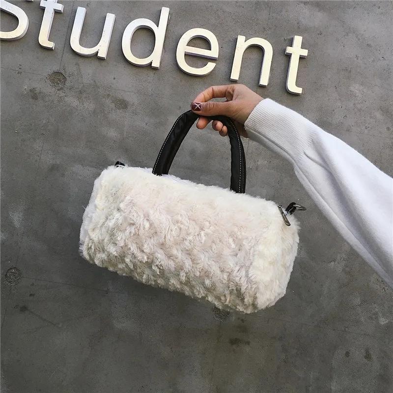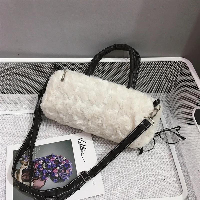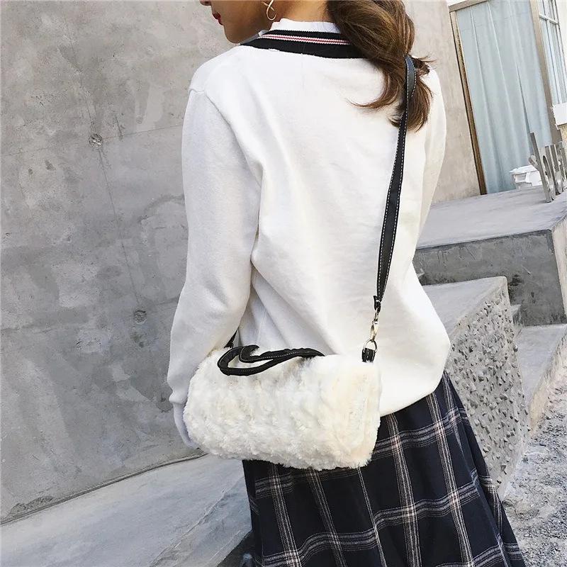 Корейская версия меховой сумки через плечо для женщин однотонная косая сумка через плечо маленькая квадратная сумка через плечо