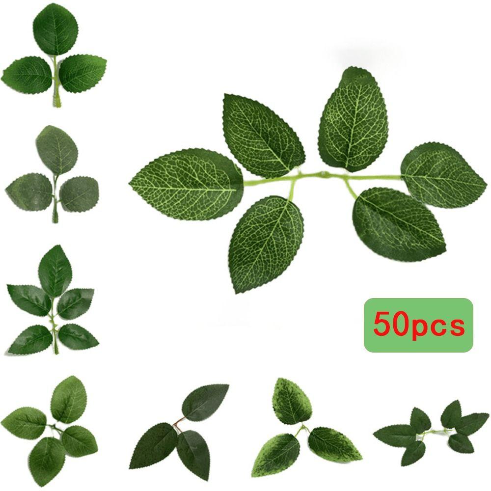 50 шт. Шелковые листья розы Листья розы Зеленый лист Сделай сам Искусственные листья розы Дом