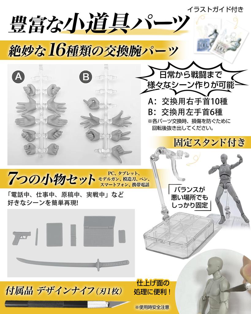 ✅ [Содержание мужской и женской версий] Материал: Корпус из ПВХ, 10 типов сменных правых запястий, 6 типов сменных левых запястий, мини-книга, ПК, планшет, ручка, смартфон и т. д., мобильный телефон, специальная подставка, чехол + держатель запястья *Чехол можно накрыть подставкой. Вы можете легко менять части и создавать любимые позы.. Профессионально занимаясь рисованием, вы сможете лучше понять движения каждого человека и сделать свои рисунки более яркими.. Целевой возраст: 15 лет и старше